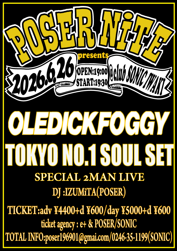 OLEDICKFOGGY&TOKYO No.1 SOUL SET ツーマンライブが開催決定!